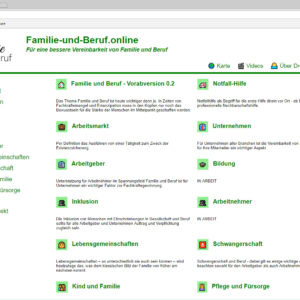 Wo finde ich eine zuverlässige Kinderbetreuung? Welche finanziellen Hilfen gibt es für uns Familien? Was tun gegen den Fachkräftemangel? Wie werde ich zum familienfreundlichen Unternehmen? Welche Pflegestufen gibt es? Der hektische Familien- und Berufsalltag prasselt mit 1000 Fragen auf uns ein. Unser kostenloser digitaler Alltagshelfer unterstützt Familien, Arbeitgeber, Arbeitnehmer und pflegende Angehörige bei diesen Themen – intuitiv, schnell und nutzerorientiert.
