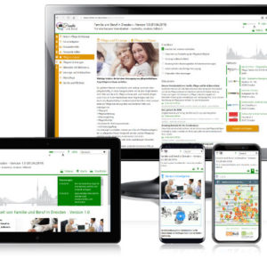 Für eine bessere Vereinbarkeit von Familie und Beruf gibt es unsere Lösung als Webseite und App, mit verständlichen Informationen u. a. zu den Themen Arbeitsmarkt, Bildung, Kind und Familie, Inklusion, Pflege und Fürsorge. Unsere Lösung bietet hilfreiche lokale Adressen samt Ansprechpartnern sowie Kartenansichten, einen Chatbot als interaktive Hilfe, Videos, Checklisten und vieles mehr. Selbstverständlich ist die Lösung weitestgehend barrierefrei gestaltet. Nach der erfolgreichen Implementierung der Pilotregion Dresden folgt zeitnah die Umsetzung mit lokalen Kontakten für den Freistaat Sachsen sowie weitere Regionen, die bereits ihr Interesse an unserer Lösung geäußert haben.