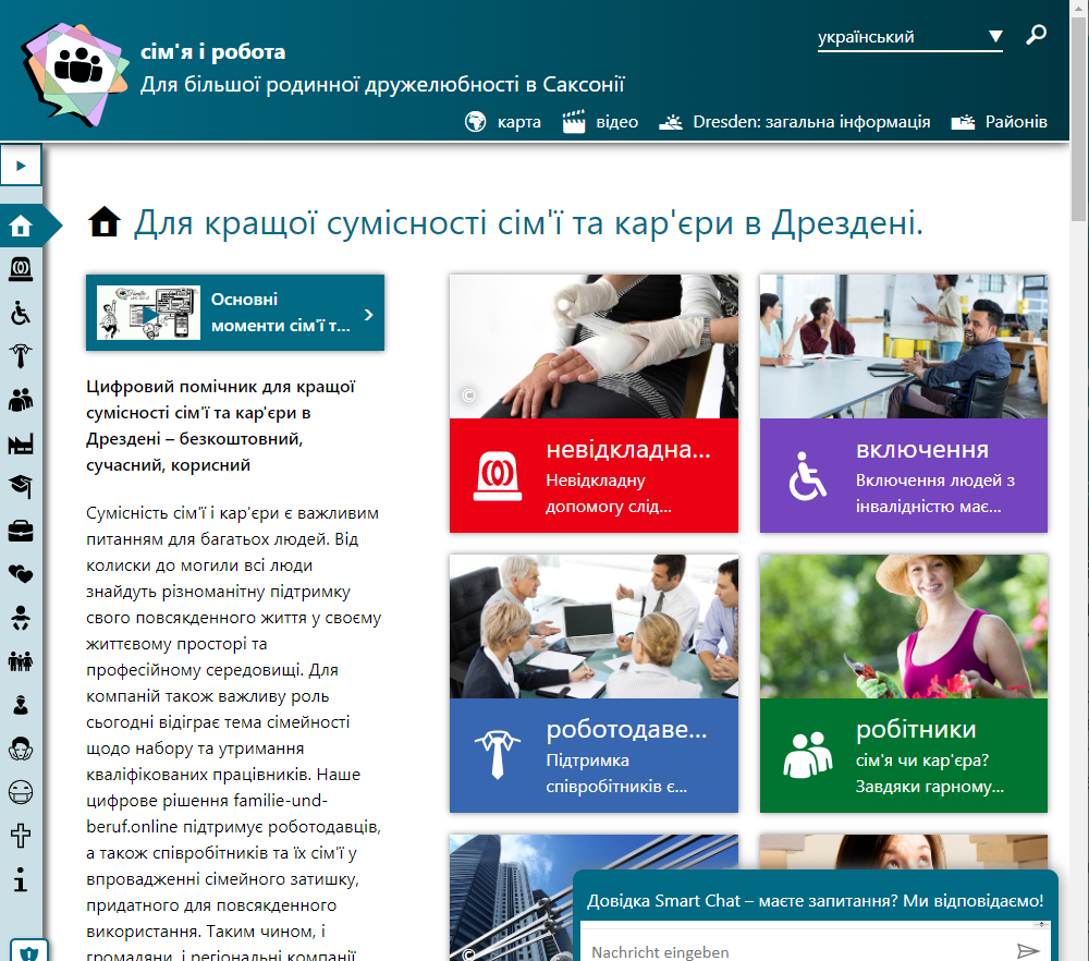 Wir haben jetzt ukrainisch in die Webseite Familie und Beruf inegriert, um aktiv in verständlicher Sprache den Menschen in Not zu helfen.