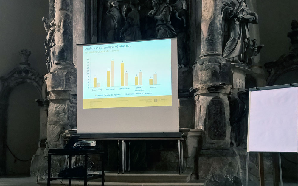 Die Stadt Dresden hatte zur zweiten Zukunftskongress „Zukunftsstadt Dresden“ eingeladen. Peggy war am 01.06.2018 in der Dreikönigskirche als Gast dabei. Die Teilnehmer waren bunt gemischt aus Studenten, Stadt, Wohlfahrt und Unternehmen.